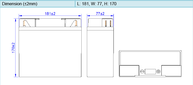 12 V/14 AH - Dim. : 136 x 91 x 168 mm