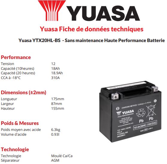 BATTERIE YUASA YB4L-B + pack acide