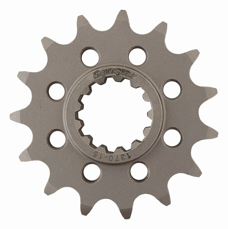 Fabriqué en acier cémenté SCM-435 pour une longévité maximale. La structure du noyau garantit des dents quasi incassable même usées. Rainures et trous d'allégement pour les applications tout-terrain. Trous d'allègement pour les autres motos. Les pignons les plus légers et les plus solides du marché.