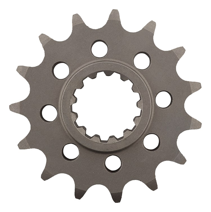 Fabriqué en acier cémenté SCM-435 pour une longévité maximale. La structure du noyau garantit des dents quasi incassable même usées. Rainures et trous d'allégement pour les applications tout-terrain. Trous d'allègement pour les autres motos. Les pignons les plus légers et les plus solides du marché.